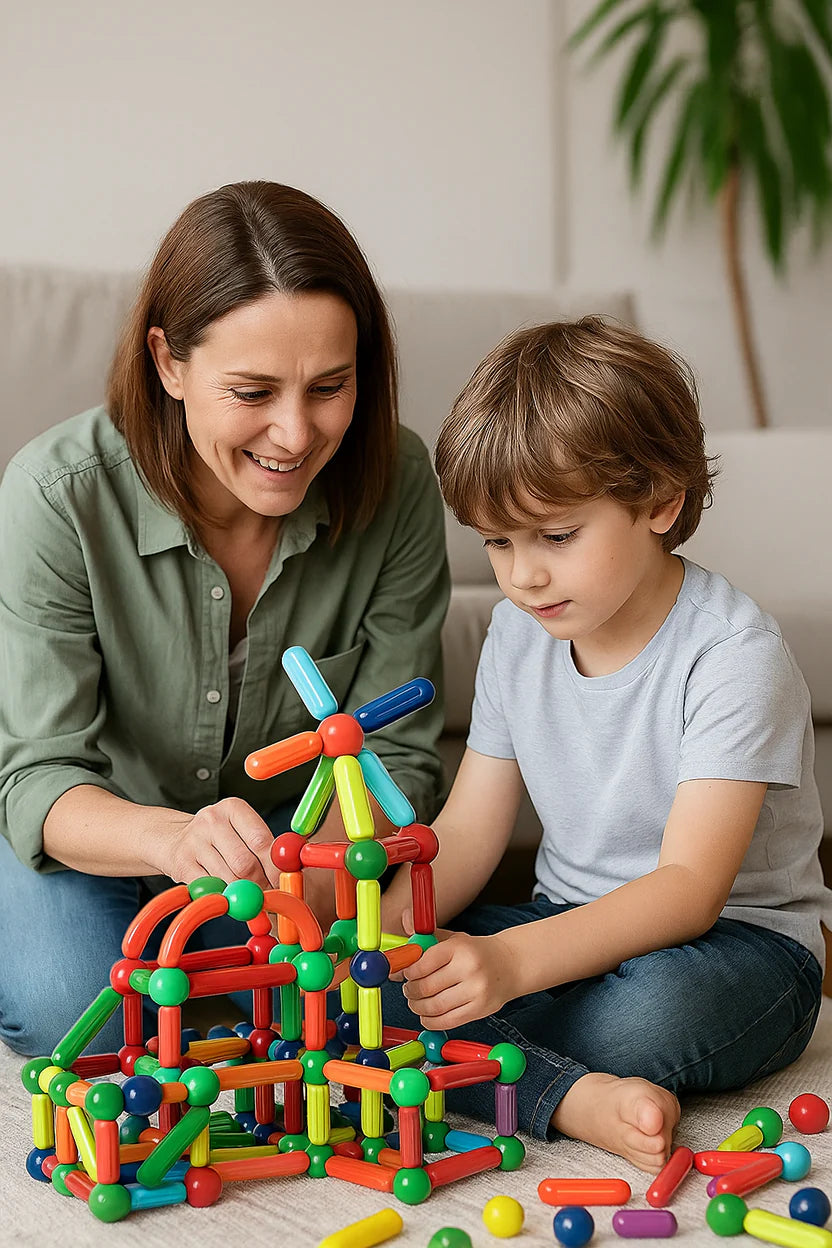 No es el típico juguete que se rompe a la semana. Cada pieza está reforzada, con bordes seguros y un sistema magnético sellado que soporta golpes, caídas y uso intenso. Perfecto para manos pequeñas y para que puedan jugar solos con total tranquilidad.